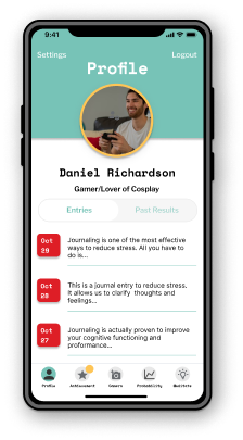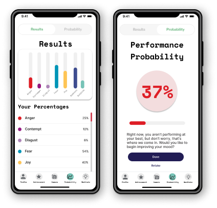 Utilizing mood tracking technology, the app analyzes the user's mood to determine their probability of winning, considering their mood results and the effort required to succeed. This information empowers users to make informed decisions.