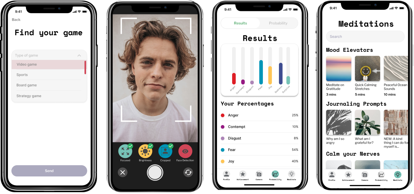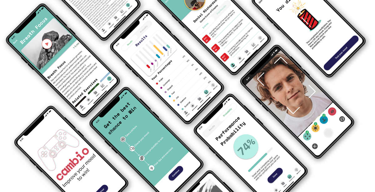 As a group of four passionate UT Austin students, immersed in our UX/UI Design certification during the pandemic, we eagerly embraced our first hackathon as an opportunity to apply our skills and delve into mobile app development. During our pitch session, the limited time available for UX research became evident. It was at this point in time, I seized the moment to propose the idea of creating a mobile app for gamers, leveraging the expertise of our team member, Emma, who had first hand gaming experience. By incorporating her user perspective, we aimed to establish a stronger connection to the product and receive prompt feedback. Our vision for gaming app was further ignited by the discovery of Google Cloud Vision- an API capable of detecting emotions. This inspired us to develop "Cambio", our innovative gamer mobile app.