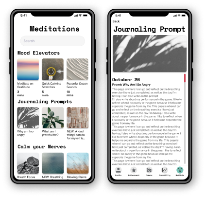 As UX designers, our ultimate goal is to create an environment that supports gamers in their quest to win while providing a tool for gamers who face gaming disorder, promoting a healthier and more balanced gaming experience that emphasizes mood tracking, mindfulness, and mental preparedness.